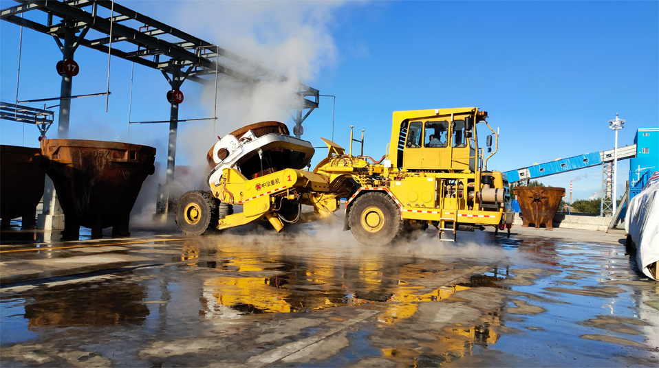 由中冶寶鋼研制的70噸鉸接式抱罐車,采用鵝頸鉸接型式,額定載重75噸,重載最高時速為每小時20公里,翻罐角度105度,最大爬坡能力8%,最小轉(zhuǎn)彎半徑9米。該車型應用專利技術10項,在國內(nèi)有色冶煉市場占有率超過75%,先后榮獲中國有色工業(yè)協(xié)會、中國鋼鐵工業(yè)協(xié)會科技獎,中國施工企業(yè)管理和中國循環(huán)經(jīng)濟協(xié)會專利獎等榮譽。